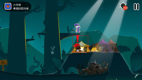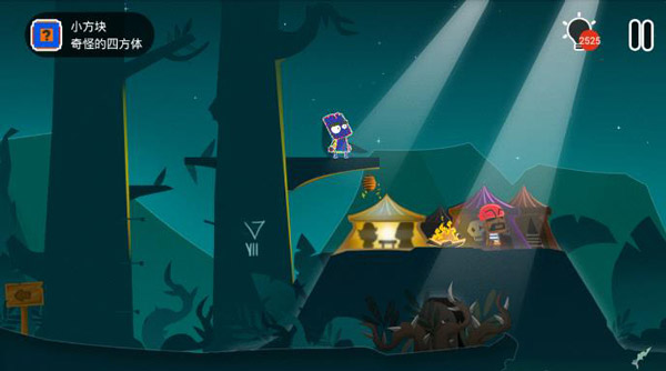 2、接着跳上另一边的树上,并往里走获得一个小方块。