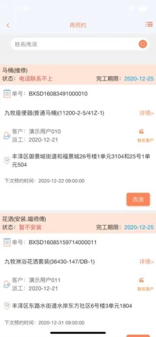 3、订单管理:待预约订单,载预约订单,待施工订单等等,多重订单在线管理,方便师傅提高工作效率