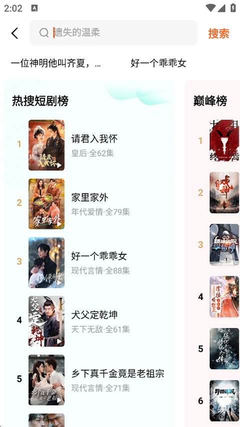 【海量短剧】拥有海量的短剧资源,包括都市热血、甜宠言情、职场婚恋、逆袭反转、逆天改命等多种类型,满足用户的不同喜好。