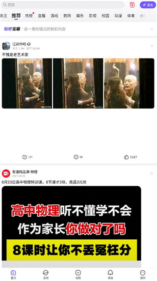 【体育赛事】获得关于足球、篮球等赛事的海量内容,足球吧、篮球吧、排球吧、田径吧、游泳吧...与吧友实时讨论精彩体育比赛、获取赛事新闻,从赛前预测到赛后分析,一起为喜欢的选手加油打call!【游戏攻略】覆盖各个游戏领域,无论你是喜欢MOBA对战游戏:英雄联盟、魔兽世界;还是钟情FPS射击游戏:CS:GO、绝地求生;在游戏吧你都能找到和你爱好相同的吧友。在这里,不管是新游热游还是小众精品,你随时可以找到攻略学习大神操作、交朋友相约游戏开黑、和众多玩家一起讨论游戏心得,与大家分享交流游戏趣闻。