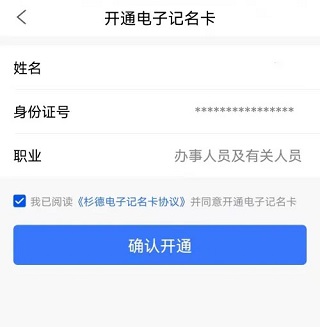 在“杉德电子记名卡”位置点击“去开通”。跳转页面后,勾选《杉德电子记名卡协议》并“确认开通”