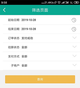 商户可以从app扫码订单管理中查询交易。点开后默认为当日交易。