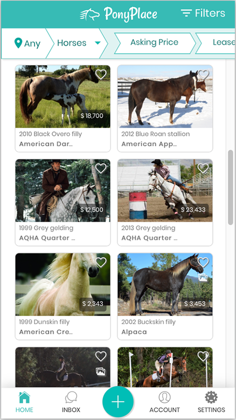 马匹交易app是一款非常专业的马匹购买服务平台,同时也称为PonyPlace,这里的马种类型十分丰富,每一匹都有详细的介绍,包括血统、重量、年龄等等,用户们需要买什么马在平台里都能够轻松满足你,让你轻松买到自己心仪的宝贝,并且里面所有的价格都是非常优惠透明的,用户在购买时没有一点伤害,可以放心进行购买,为你带来优质的交易服务。另外,马匹交易app的特色就是用户无需到现场看马匹,只需要通过在线观看马品详细信息,就可以让喜欢马爱好者来采购,所以也是一款线上做得不错具有独特风格的手机商城平台,对此,有需要的朋友们欢迎你来本站下载使用!
