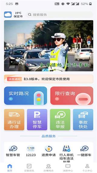 保定交警最新版本是河北保定老乡常用的一款交通管控平台、生活辅助类软件。它将各个智能交通子系统集成有机整体,为市民提供更加实时准确的路况、拥堵、易积水点位信息,还创造性的开发了空余车位推送、红绿灯倒计时提醒、交管服务点便捷导航等多项功能,实现了实时路况查询、一键报堵、一键挪车、智慧车管、智慧停车、事故快处、违法举报、设施报修、积水上报等多项业务功能的在线便捷办理,为市民提供更便捷的品质出行服务。