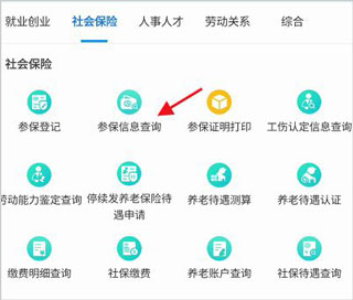 4、进入办事,找到社会保险,点击下方的参保信息查询进入。