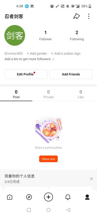 1、下载安装好kwai快手国际版后,点击右下角的“profile”后。
