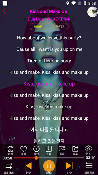 2、跟随滚动歌词,边看边听你最爱的歌曲。