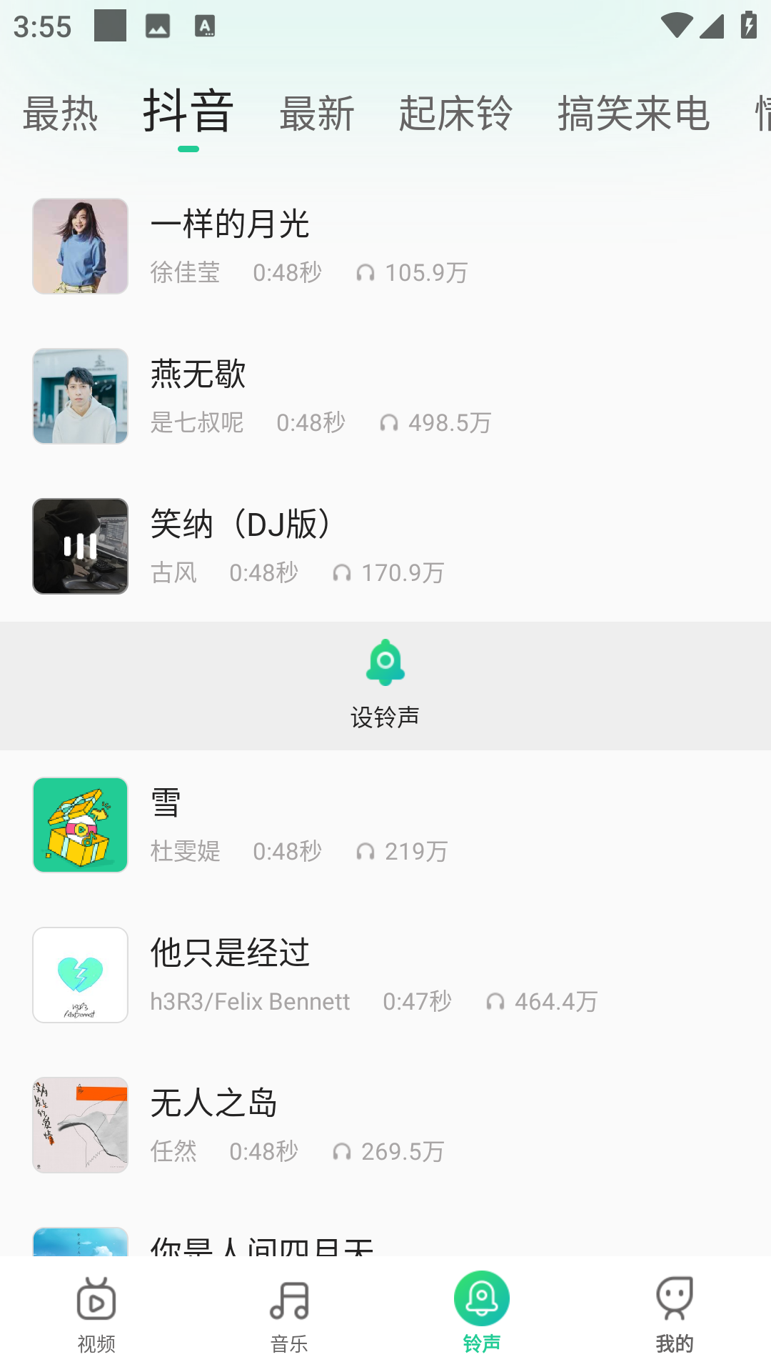 3、下方铃声有许多好听的音乐可以设置为来电铃声。