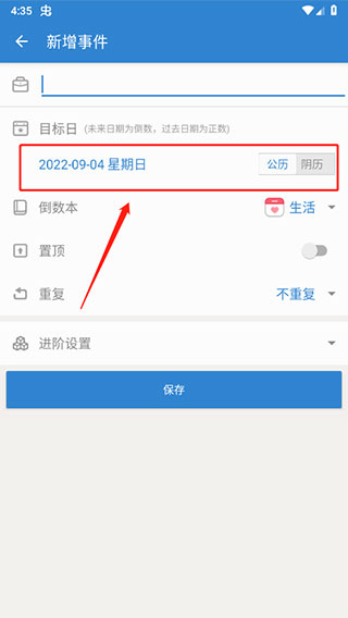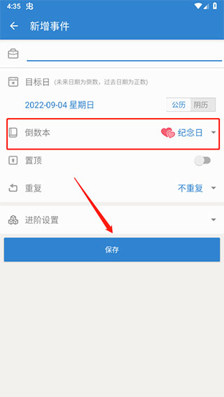 3、切换成纪念日,最后点击保存即可。