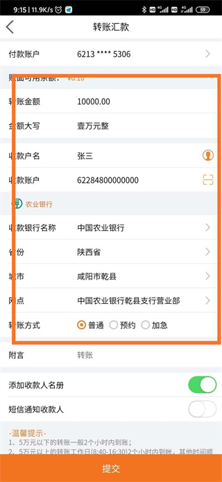 向同一中银富登村镇银行(同法人行)的客户账号进行转账。