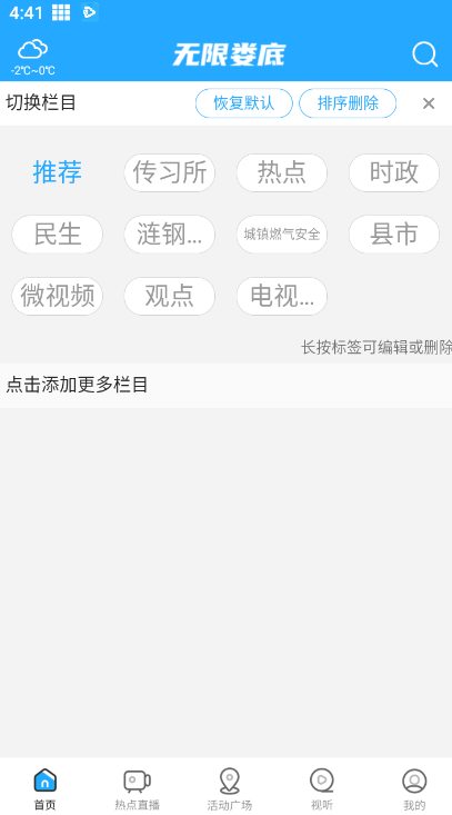 2、用户点击右上角的加号可以选择自己感兴趣的栏目;