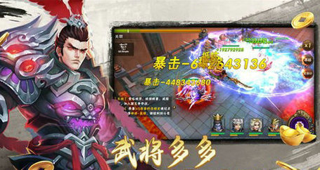玩家可以获得魏、蜀、吴、群雄四大阵营不同属性和类型的将领;例如,蜀国的刘备、关羽、张飞等;魏国的夏侯惇、司马懿;吴国的周瑜、孙权;吕布、貂蝉、张娇、袁绍等将陪伴玩家并肩作战;每个将领都有独特的技能和特点,玩家可以根据自己的喜好和战术需求来选择合适的将领进行战斗;