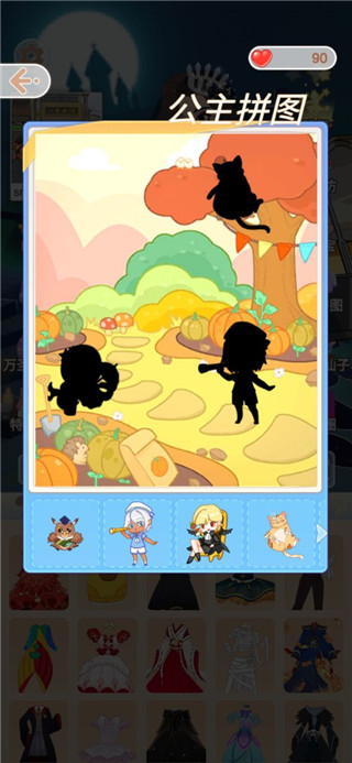 6、选择同样类型的人物角色,将她们放入黑色框框,然后拼好就可以卖出去,获得爱心。
