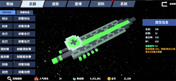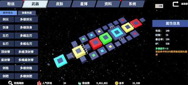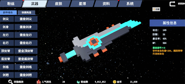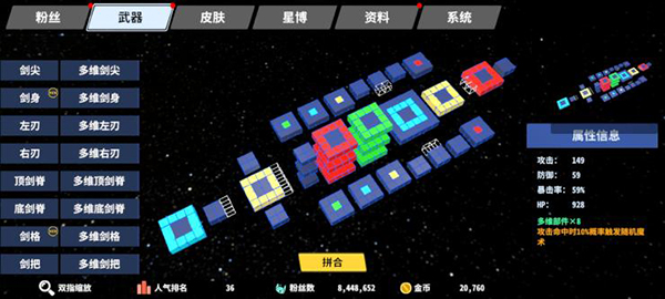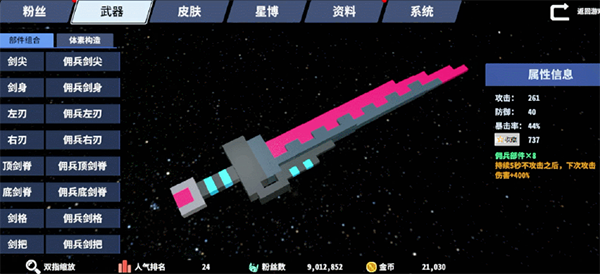 攻击Boss特定位置,掉落多样化武器部件。相同前缀的武器部件,还含有特殊的套装效果,搭配体素构造功能,可以发挥想象打造属于自己的绝世好剑!