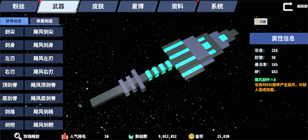 星际角斗场武器部件组合介绍
