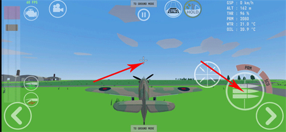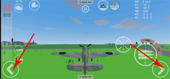 2、滑动屏幕可以控制飞机的视角,点击右方的子弹图标进行攻击。