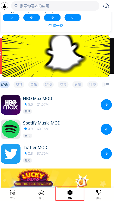 3、菜单栏点击应用,都是国外比较热门实用的手机应用。