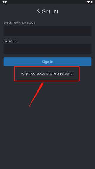 1、打开Steam Mobile App,点击“忘记密码”;