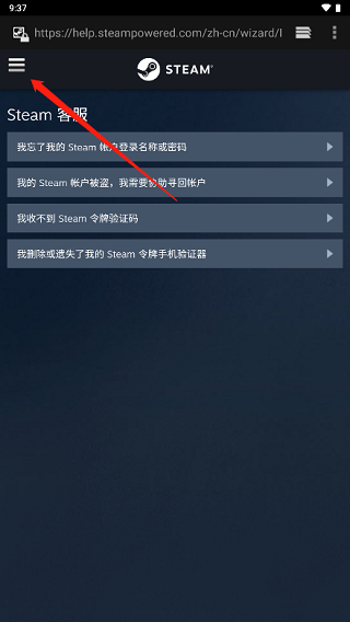 2、这时候会通过浏览器跳转到Steam官网,点击左上角“三”按钮;