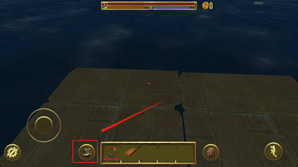 2、进入游戏将会在一块浮木上,玩家可以通过工具打捞海上飘荡的物品,制作以供生存的工具