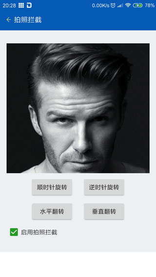 3、软件还可以在打卡时上传相册里面的照片,在拍照拦截功能里面就可以设置上传到企业微信的照片,我们设置小贝的照片上传。