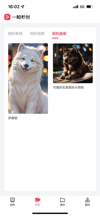 4、生成好的作品可以在“作品”,“我的画册”中查看
