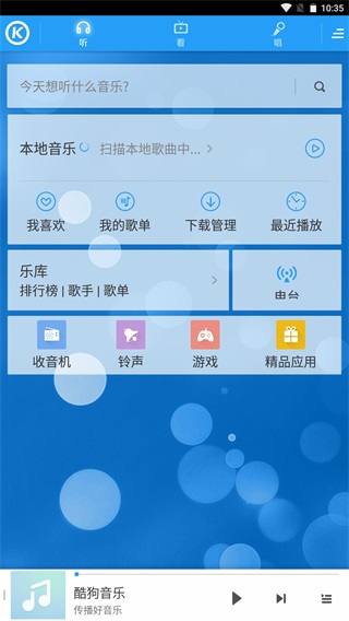 酷狗音乐2023旧版是一款功能强大的音乐播放软件,由广州酷狗计算机科技有限公司开发。它提供了丰富的音乐资源,涵盖乐库、电台、MV、直播和歌词等多个板块。用户可以轻松找到并试听最新歌曲,而且下载速度快,操作流畅。