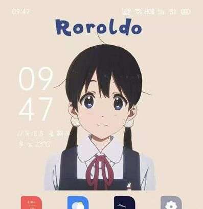 5、最后,全部设置好后,返回手机桌面,可以看到手机上已经有可爱的角色模型了。