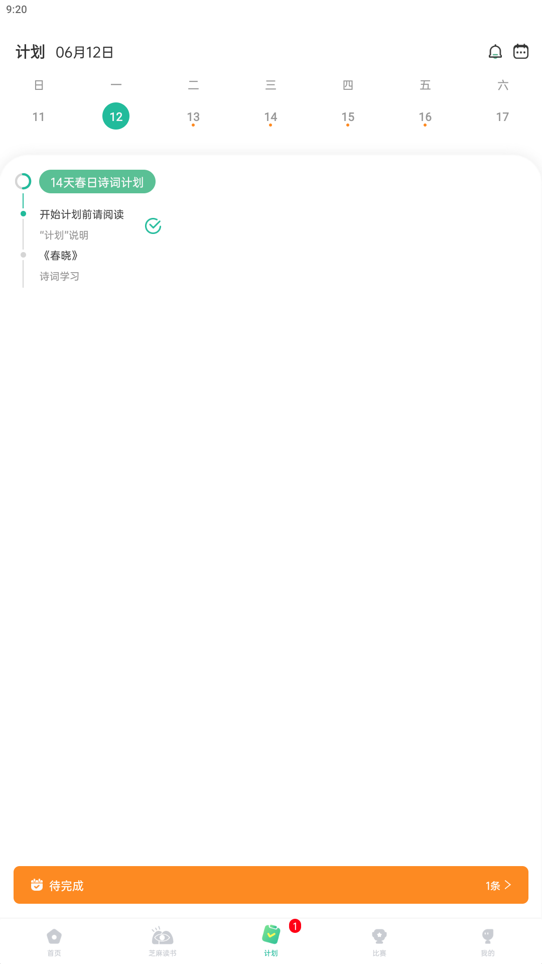 3、选择计划之后即可看到计划里每天的学习任务了。