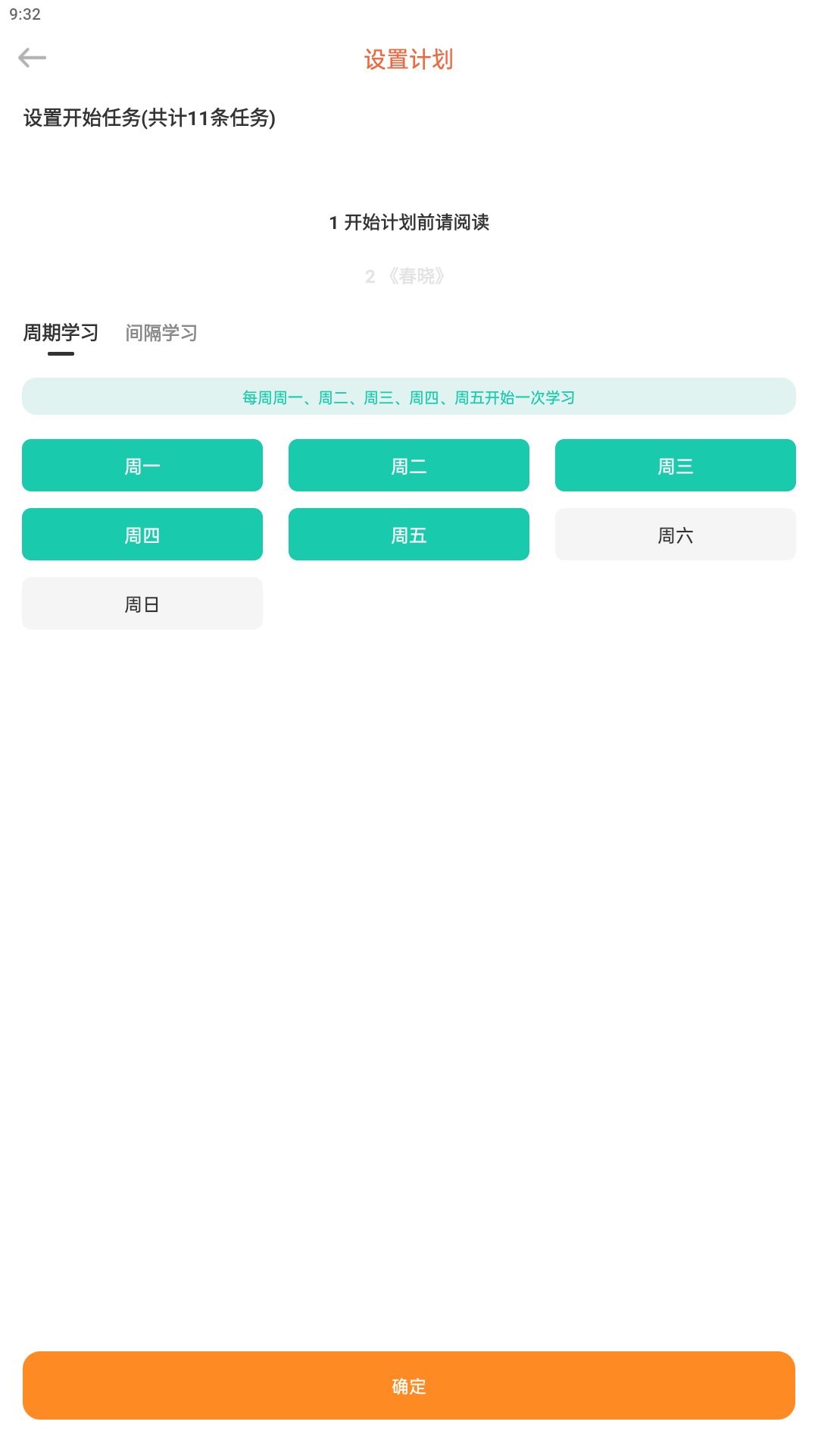 2、加入计划后设置学习计划时间,可以选择周期性和间隔性学习。