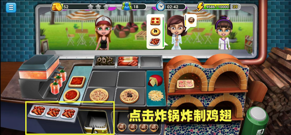 点击左下角炸锅,即可自动炸制鸡翅。