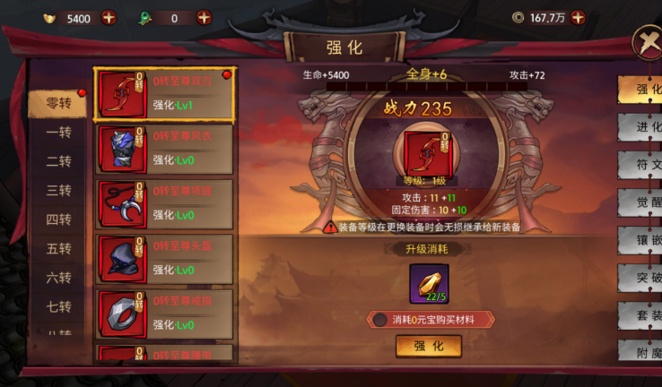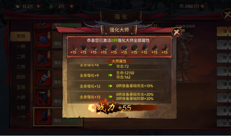 全身装备均强化到一定等级,还能获得强化大师额外的属性加成,全身强化到一定等级还能获得攻击防御的百分比加成。