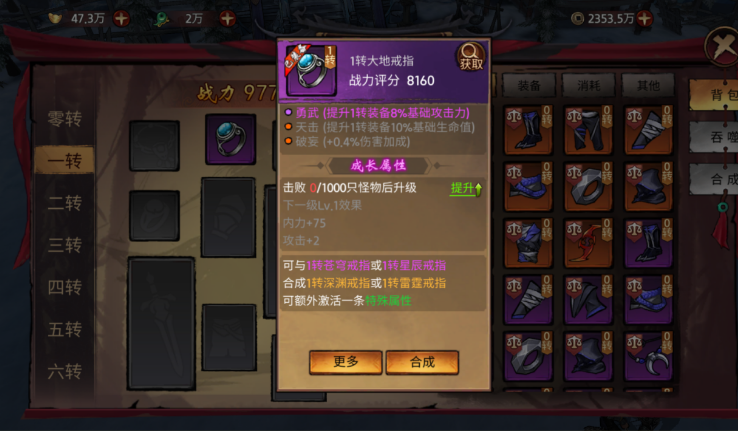 成长装备不需要动手强化,只需要穿戴在身,击败足够的敌人,便可以激发属性。