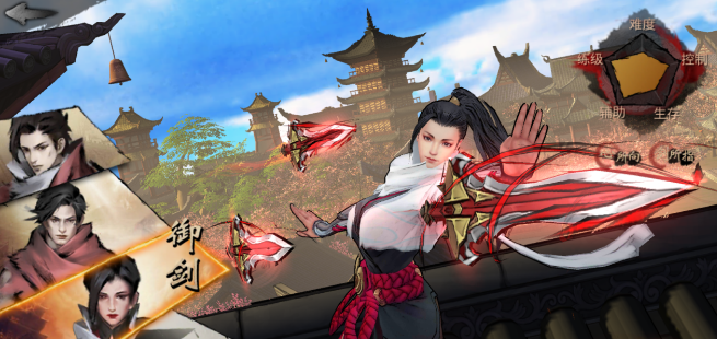 御剑的技能有四个,剑符、剑刃环绕、冲击波、剑阵波。