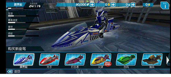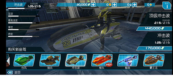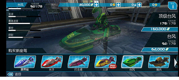 最让我觉得有意思的是游戏里的快艇种类,从入门的霹雳艇到终极的霸王龙,每种快艇的性能都不一样,价格也挺高的,得通过比赛积累钞票才能解锁更高级的船。而且还能给快艇喷图、贴花,个性化十足。