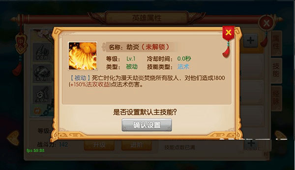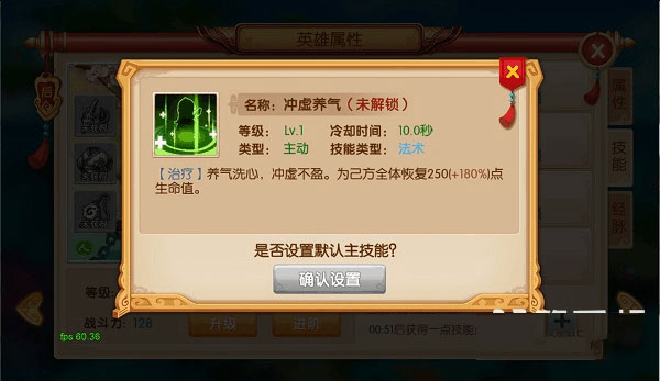 2、除被动技能外,每个英雄上阵时只能使用一个特定技能,只需将那个技能设置为默认主技能即可。