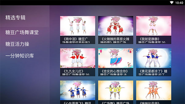 糖豆广场舞tv版是由北京小糖科技有限责任公司专为喜爱广场舞的用户所推出的一款在线学习广场舞的软件,用户可以将这款软件安装在这款软件安装在智能电视,智能机顶盒,投影仪等安卓系统的大屏幕上,这样用户就可以在家中享受到广场舞的魅力,广场舞现在可以说是城市中的一道靓丽的风景线,但是因为广场舞也出现了很多的社会现象,所以为了避免出现混乱的场景,各位喜爱广场舞的朋友可以在家安装这款软件,在家也能跳广场舞,或者是在家学习各种广场舞,软件内收集了来自全国各个地方的专业广场舞老师以及广场舞大人的的教学视频,用户可以选择离线观看也可以在线观看现场直播教学,用户可以在糖豆广场舞tv版中挑选喜爱的舞步,这里有超过30种舞步任用户挑选,清晰视频大屏播放让您告别混乱的学舞环境,犹如私教老师亲临指导,感兴趣的朋友快在本站下载体验吧~
