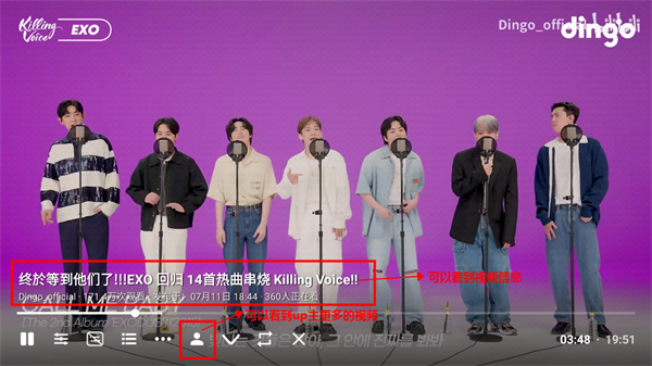 4、点击下图图标,可以看到自己账号的主页,历史记录等都是与B站实时同步