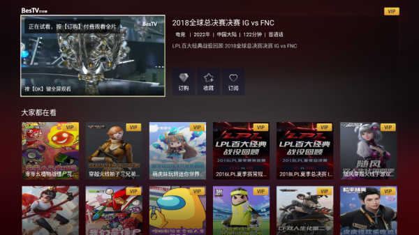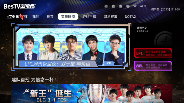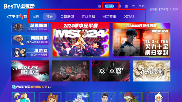BesTV云电竞软件提供了丰富的电竞比赛直播内容,包括国内外各类竞技游戏的比赛,如英雄联盟、王者荣耀、DOTA2等,用户可以实时观看比赛进程,并分享心情和评论。