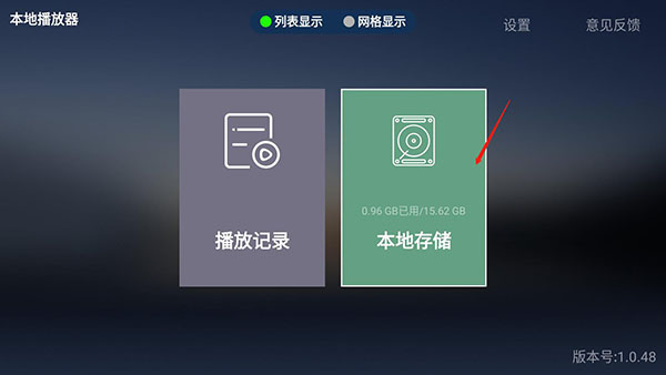 1、可将下有影视资源的U盘插入电视上,按照如上方法安装之后打开,选择本地存储;