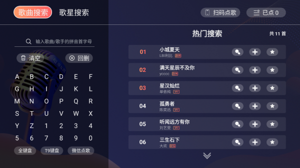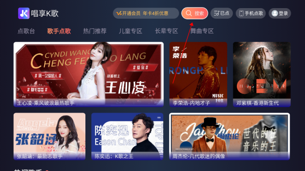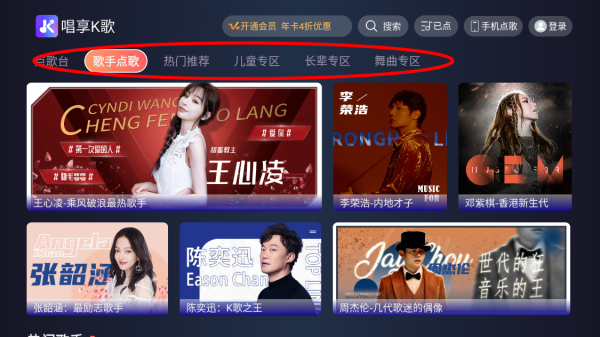 2、歌手点歌:热门歌手、歌迷偶像、港台歌手、新生代歌手