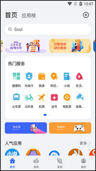 随着移动行业不断的进步,一种新型的“快应用”出现了,这是一种“无需安装、即点即用”的新型应用,体积小、占用存储空间少,体验与原生APP一致,但是想要使用的话起码要安装快应用市场才行~通过华为快应用中心,您可查询、收藏、管理常用的快应用,并将您喜爱的快应用添加到桌面,随点随用~无需安装等待过程,只需将它添加到手机桌面上即可,不仅可以为手机节省内存空间,还可以方便用户管理手机上的所有应用;同时因为这些应用在手机上占用内存较小,所以在省电模式下使用也是毫无压力的,而且可以很大程度的保证手机电量,不仅如此,快应用中心内容丰富,用个性化为你精准匹配,而且支持一键搜索让你快速找到你想要的资源,甚至还有游戏排行榜等等~别忘了这些都是无需安装直接使用的哦~快来探索新鲜有趣的快应用吧!