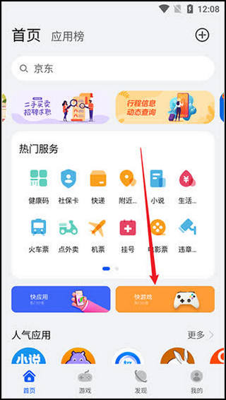 2、从这里开始往下翻,直到找到【快游戏】栏目。