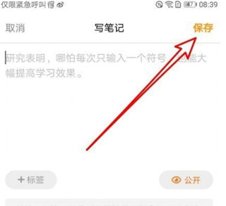 6、接下来就会打开写笔记的页面,在页面中我们填写自己要记笔记的内容,最后点击右上角的“保存”按钮即可;