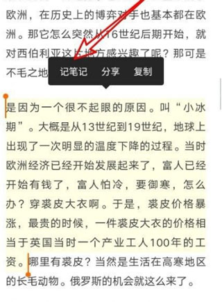5、这时就会打开当前正在播放音频的文稿页面,然后长按文稿页面,我们选中要添加笔记的内容,然后点击“记笔记”按钮;
