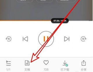 4、然后在打开的播放音频页面中,我们点击“文稿”的图标;