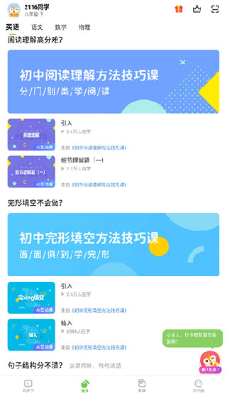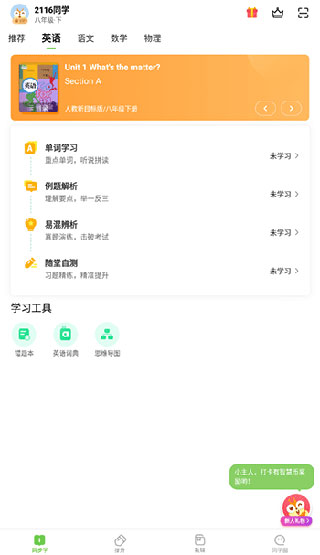 老师也能通过这个平台布置作业和任务,方便管理学生的学习进度。我觉得这个APP挺适合现在的孩子用的,毕竟学习方式越来越多样化,而且功能这么齐全,用起来也方便,随时打开就能学,特别适合课后巩固或者提前预习。