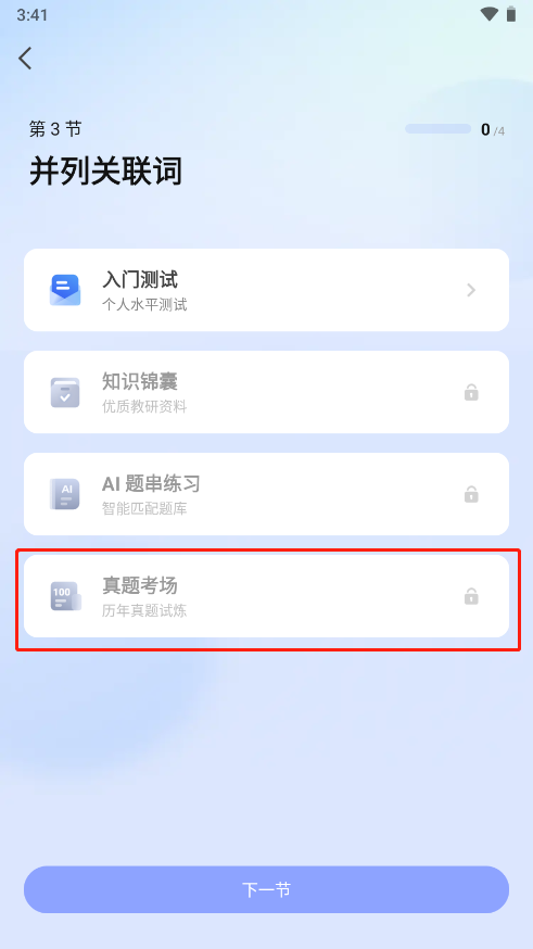 使用起来也挺方便的,安装登录后就能开始测试了。通过入门测试后会根据结果推荐适合的学习路径,比如直接进入真题练习或继续巩固知识点。软件还设计了一些小功能,比如卡片式教学、分级练习和模拟测试,让学习过程更有针对性和趣味性。
