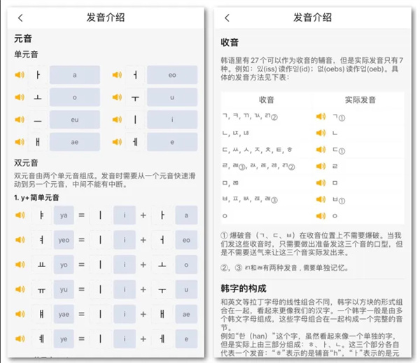 日语和韩语更配有字母小关卡和发音表跟读,帮助你更快更好记忆五十音和韩语字母。