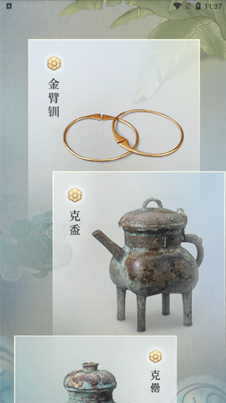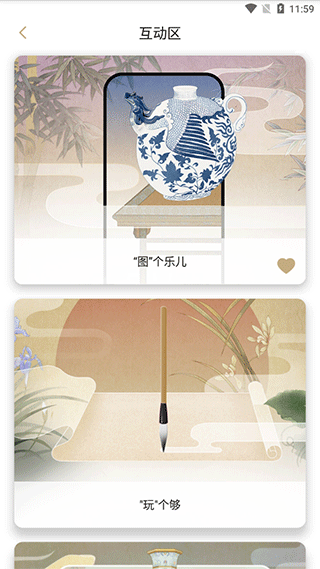 使用起来也非常方便,首页滑动切换功能即可进入四大板块:藏书馆、百宝阁、展览集和互动区。每个板块都有独特的功能,如查看精美图册、了解展品详情或参与互动游戏。此外,app还特别适合学习中国艺术史的学生和历史爱好者,是日常充电的好帮手。
